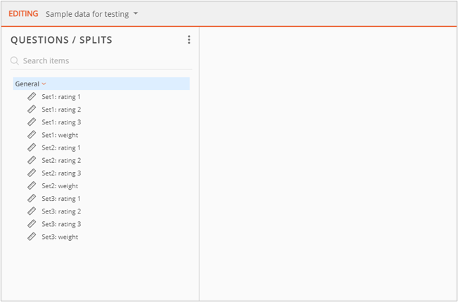 Drag the numeric questions intended as weights into a column of the evaluation set.